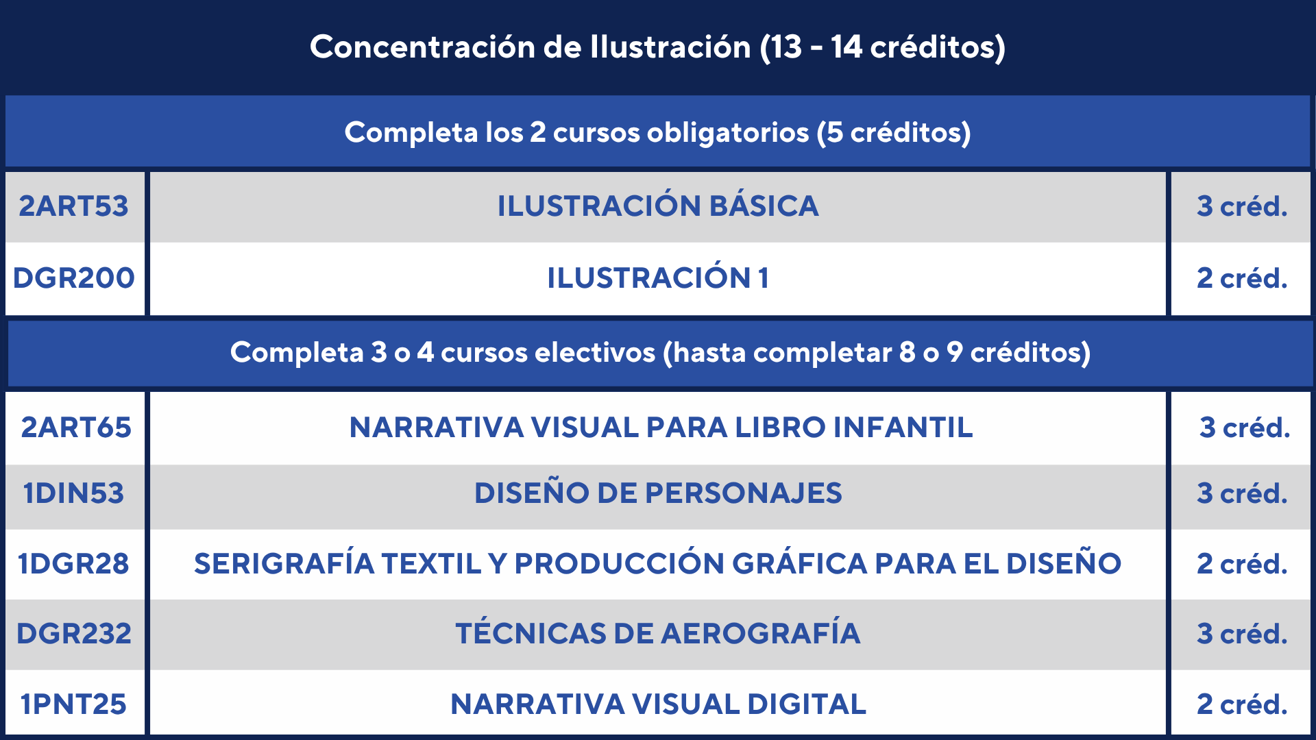 En un mundo donde las imágenes comunican más que las palabras, la ilustración se ha convertido en una herramienta esencial para contar historias, transmitir ideas y conectar con audiencias diversas. Con nuestra concentración en Ilustración, desarrollarás las habilidades para destacarte como un creador versátil, capaz de fusionar arte, diseño y narrativa en proyectos innovadores.